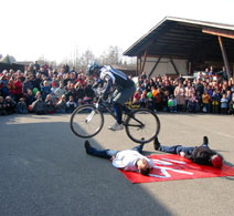 und springt mit Anlauf über beide, dies wird bis zu ca. 6 Personen